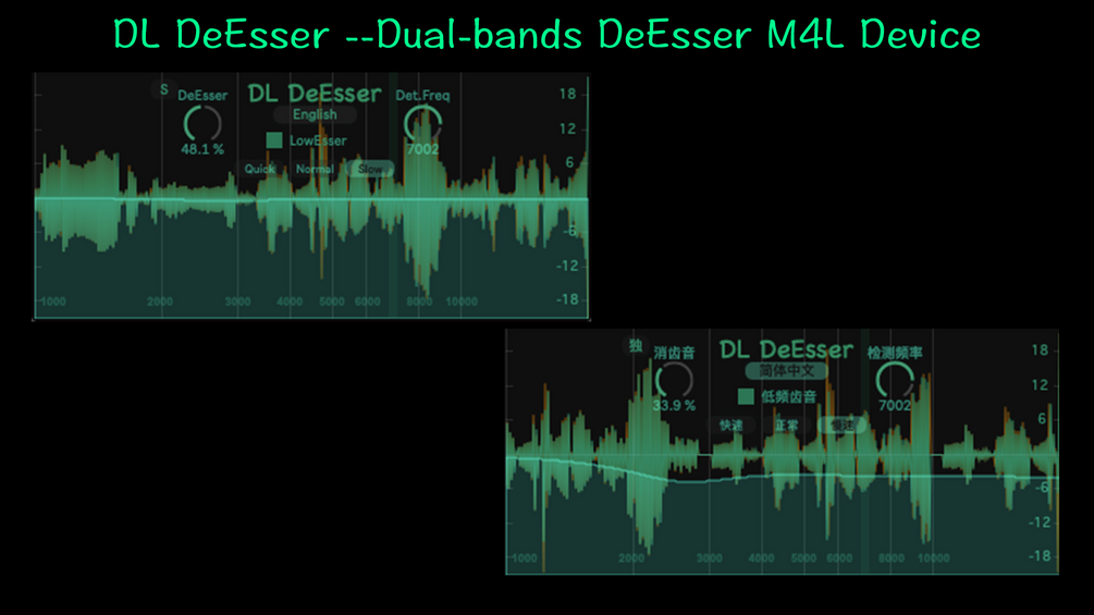 This is a dual-bands de-esser M4L plugin. Featuring the following characteristics: