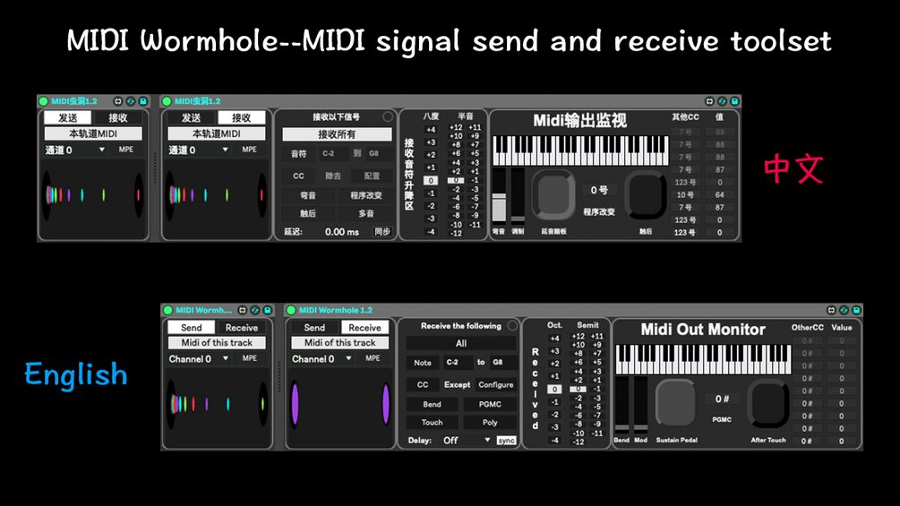 MIDI Wormhole 1.2 -- MIDI Send and Receive Toolset (En & Ch)