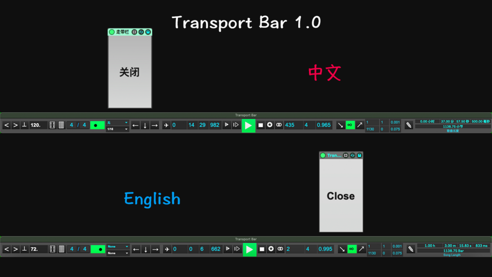 Transport Bar 1.0 --A Floating Transport Control Bar M4L Device (Zh&En)